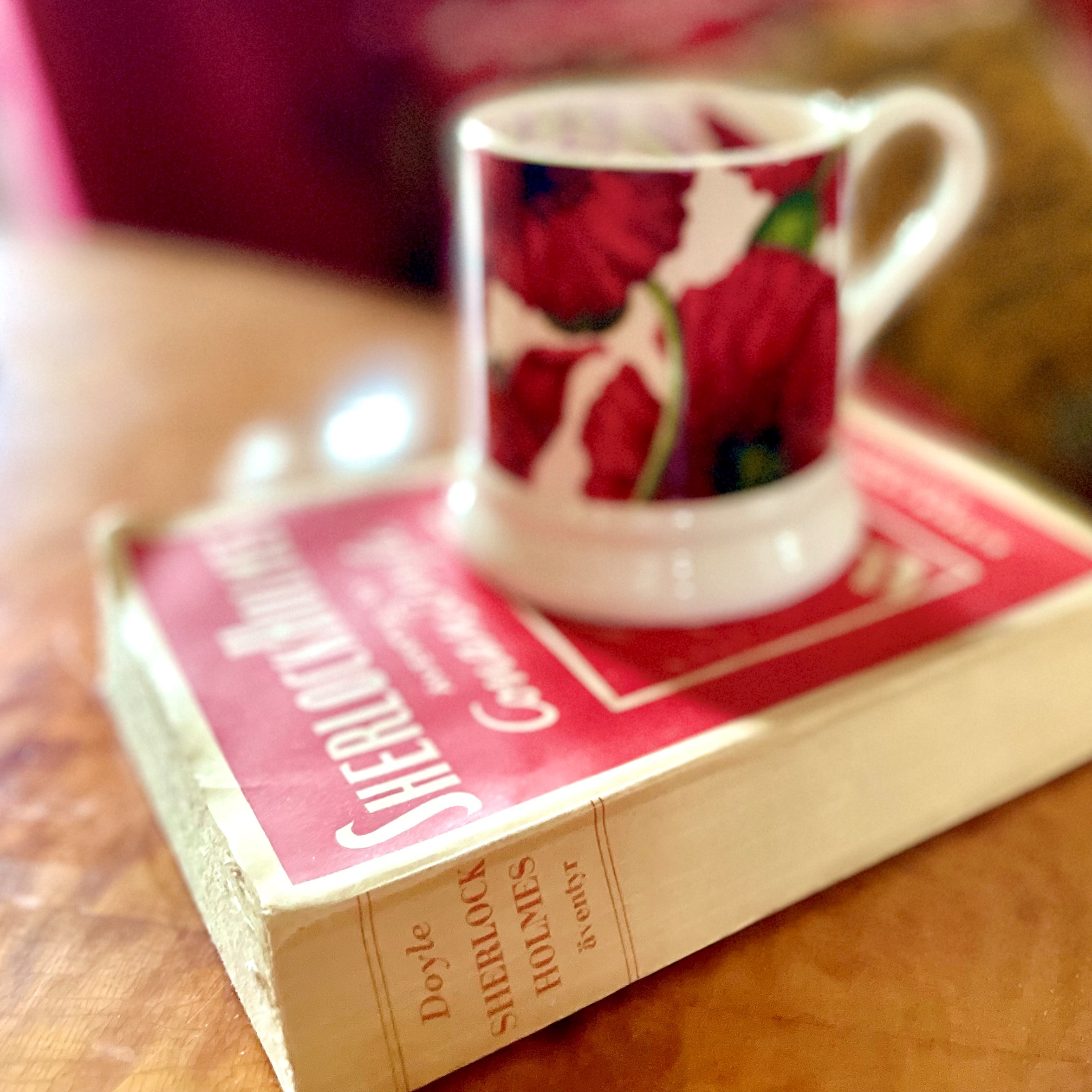 Vi på loppis.design älskar verkligen färg. Färg kan få oss att slappna av, väcka kreativiteten, få igång oss, omsluta oss och ge oss trygghet. Lika mycket som vi älskar färg älskar vi också att matcha, det ger en extra tillfredställelse som är svårslagen. Som till exempel att matcha det man läser med den kopp man dricker ur, det får oss att fullkomligen gå i spinn. En gammal sliten och tummad upplagan av “Sherlock Holmes” fick en god vän i muggen från Emma Bridgewater vars design med hjärteröda vallmoblommor får oss i perfekt sinnesstämning för ett deckarmysterium. Brukar du matcha din läsning med din kaffe- eller tekopp?