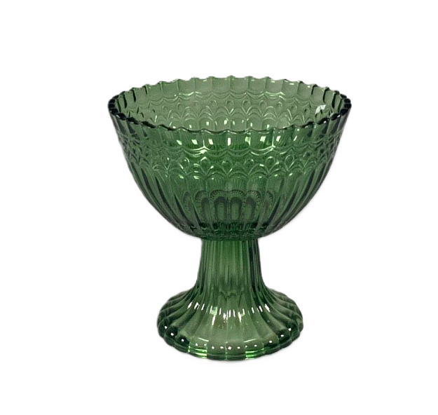 Att skapa ett dignande påskbord efter konstens alla regler kräver sin planering och inte minst kunskap om gästernas favoriter. Jag skulle även vilja lägga till betydelsen av det estetiska, hur man lyfter den enklaste rätt till nya höjder med en vacker inramning. Inlagd sill är en sådan rätt som kanske inte alltid är så färgglad men som kan lyfta och fresta på ett alldeles kolossalt sätt serverad ur en vacker skål. Det roligaste tycker jag är att blanda gamla klassiska designfullträffar med nya och lite enklare varianter. I vår påskavdelning hittar du till exempel en lite förtjusande skål på fot av pressglas med en underbar grön färg. En grön skål passar ju så klart in överallt och året runt, både till julbordet och påskbordet, så det är en god investering. I loppisavdelningen finns dessutom en hel del andra godsaker i form av Mats Jonassons ikoniska “Waterlily”-skål för Kosta Boda som min farmor alltid serverade geléhallon och lakritsbåtar ur, en omärkt skål med metallfot och finfin och romantisk design från Reijmyre glasbruk. Blanda hejvilt och även den enklaste sillanrättning ska lyfta och dina gäster förnöjsamt ta för sig av läckerheterna samtidigt som de mumlar “mmm”.
