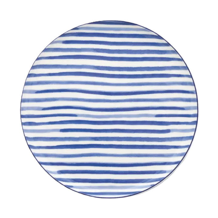 En liten och nätt assiett (15 cm i diameter) i randigt och klassiskt blåvitt. Matcha med den tillhörande muggen. Tillverkad i Nederländerna.