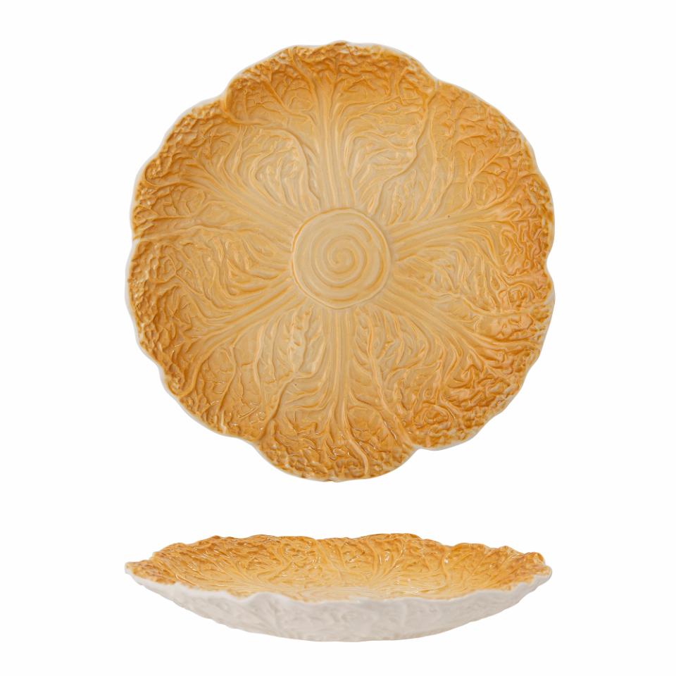 Ta in trädgården i din dukning med den här tallriken av stengods med vackert mönster av blad. Tål diskmaskin och micro. Diameter 21 cm, höjd 2,5 cm