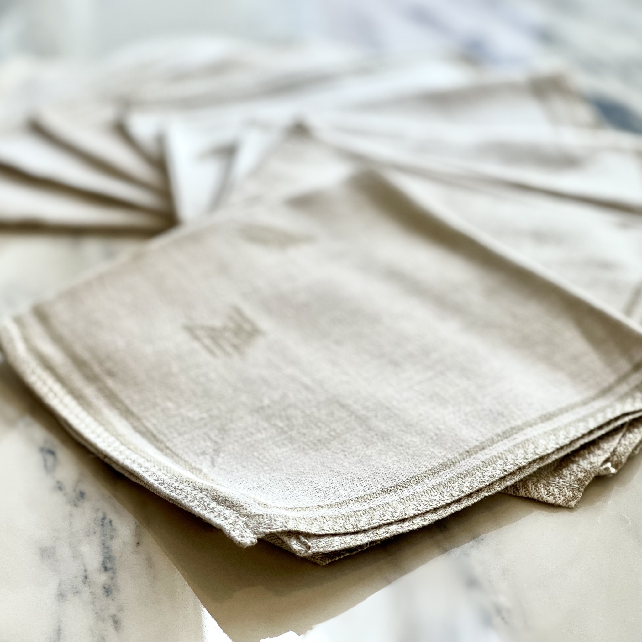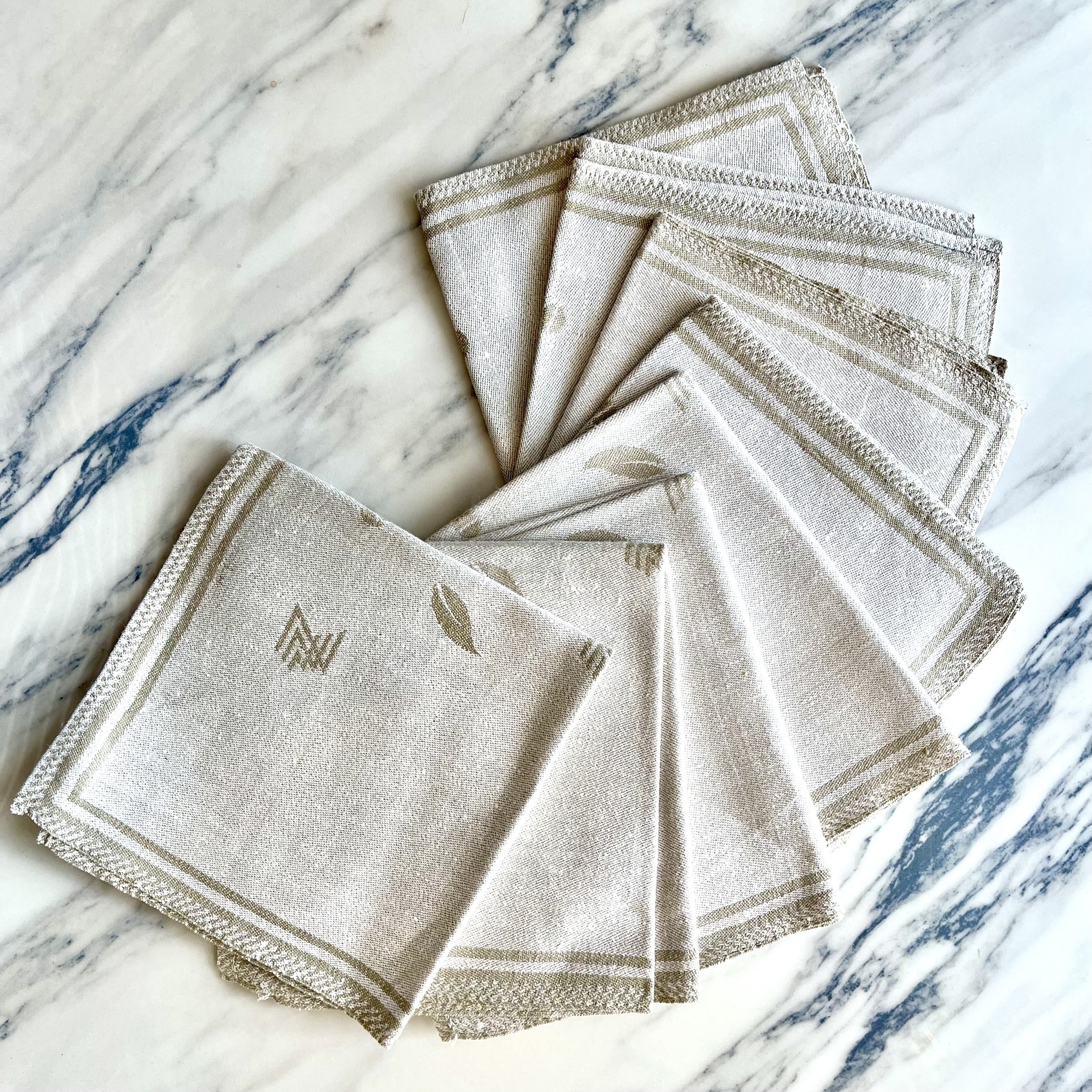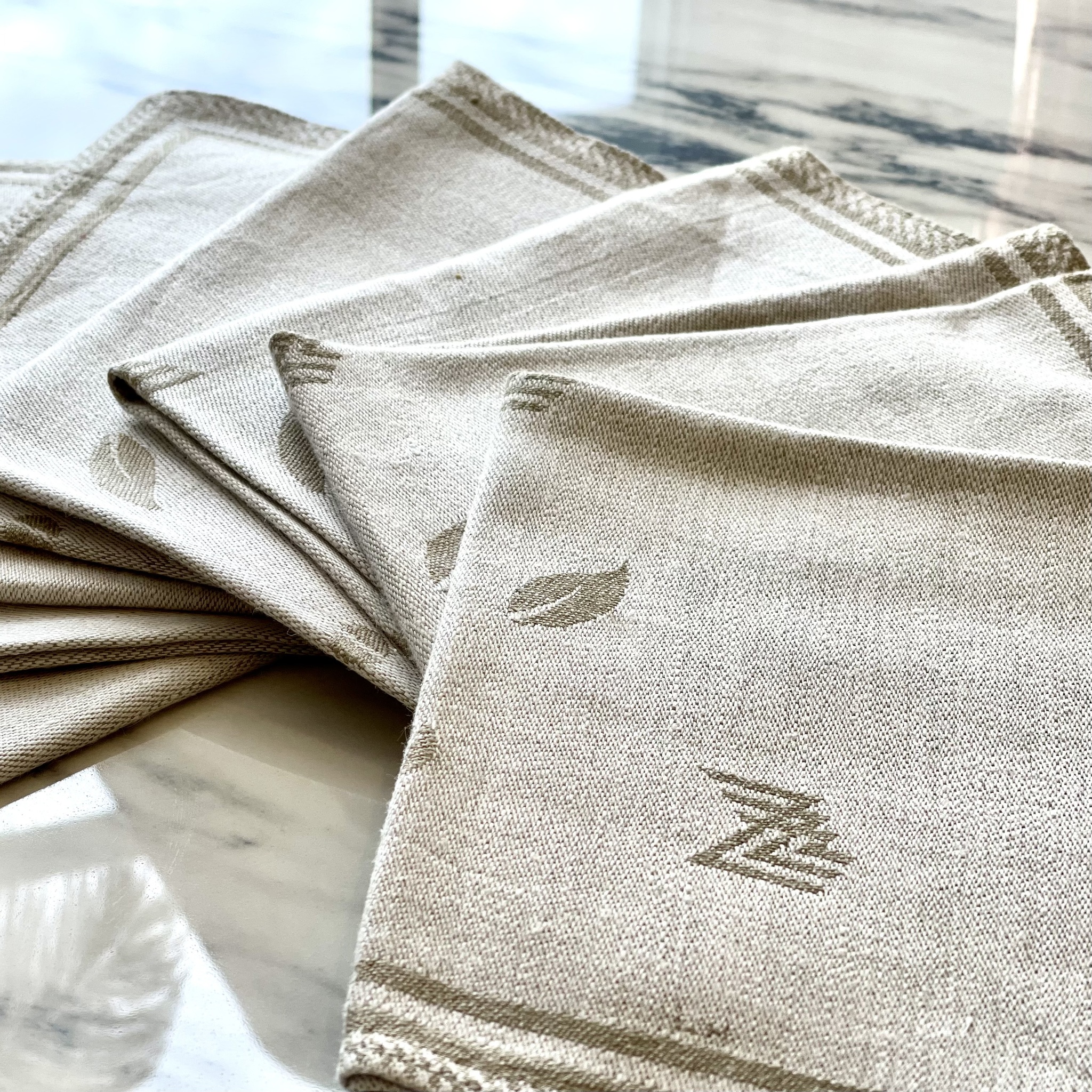 Åtta mönstrade servetter i naturfärgat linne