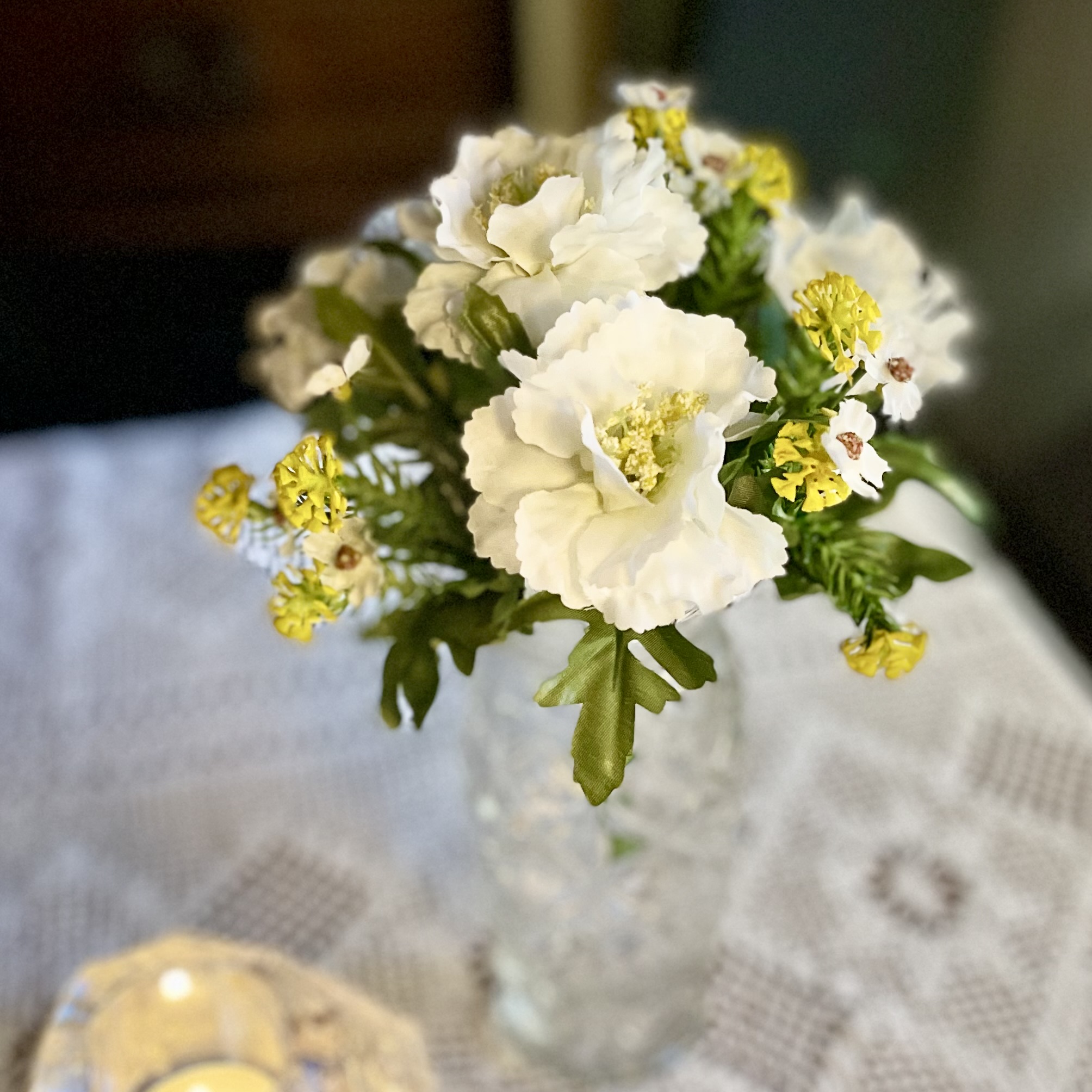 En liten och nätt konstgjord bukett, färdigmatchad och klar! Höjd 20 cm,