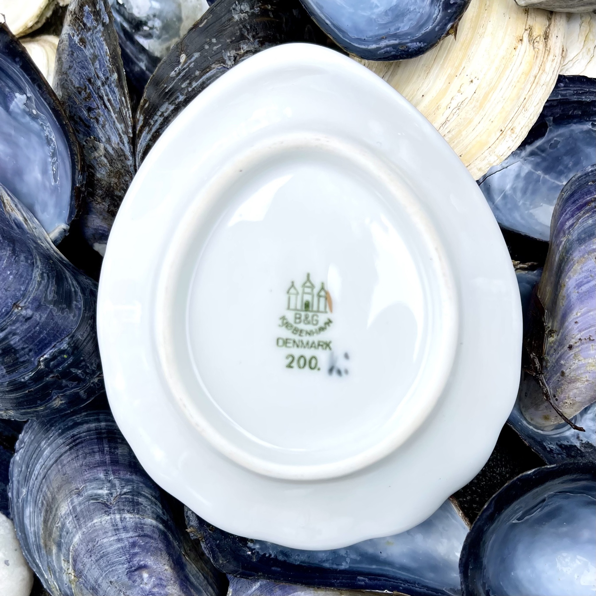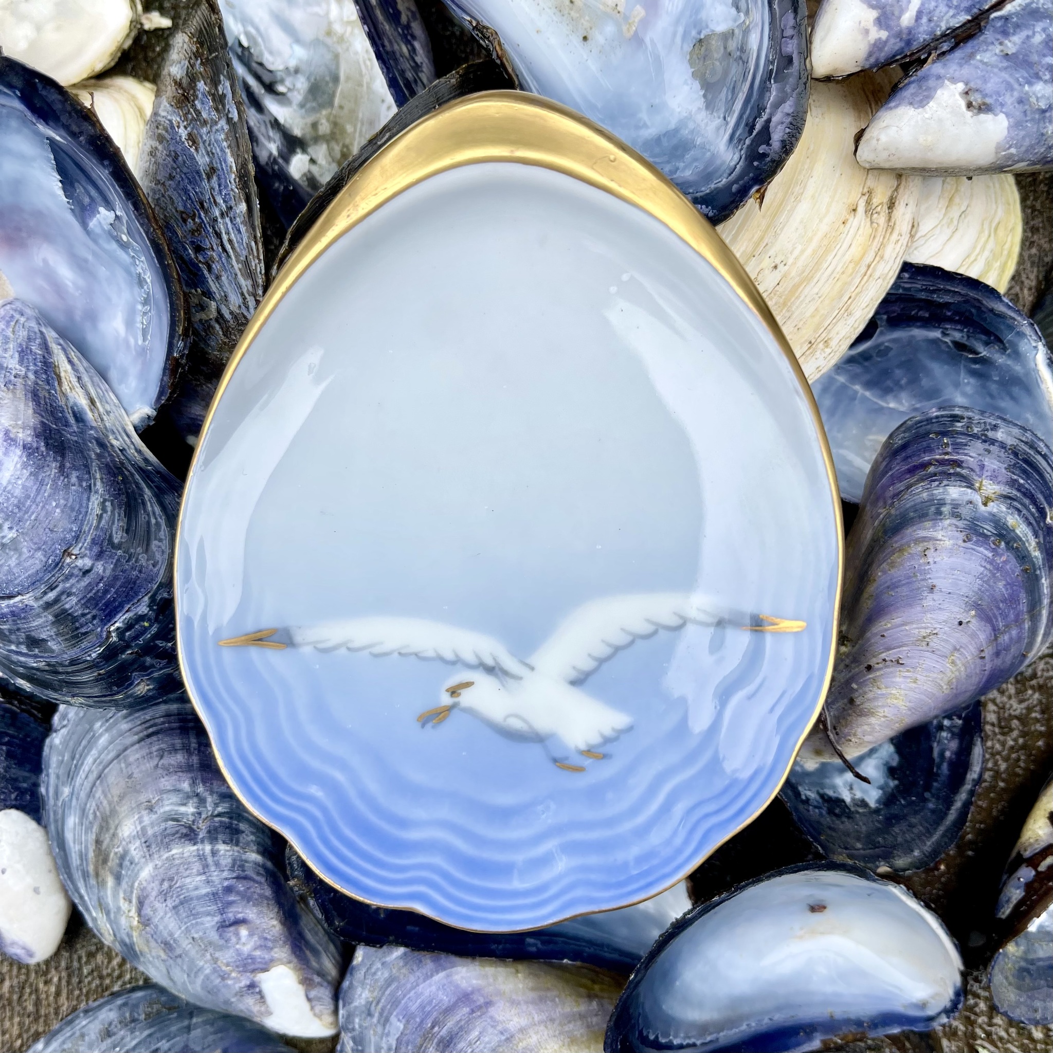 Fat för tepåse från Bing & Grøndahls klassiska serie ?Blå Måsen?. Guldkant. Bredd 7 cm, längd 9 cm, djup 1,5 cm. Obetydligt bruksslitage.