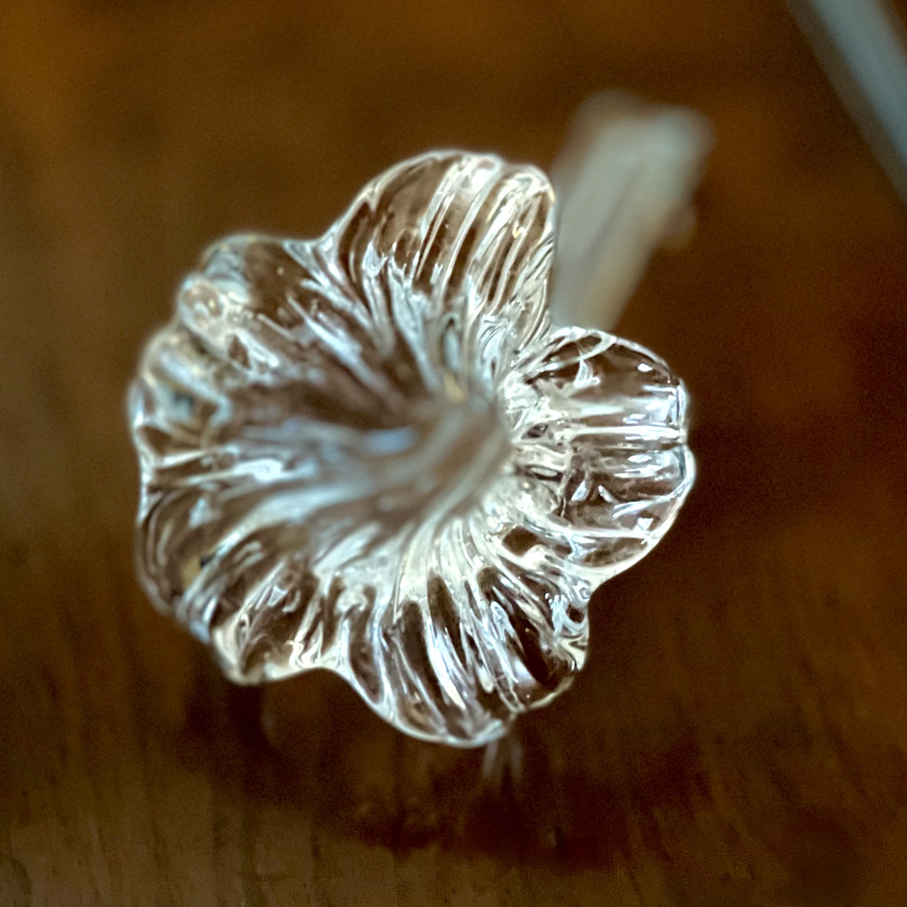 En vacker glasvas för den ensamma, solitära blomman. Längd 14 cm.