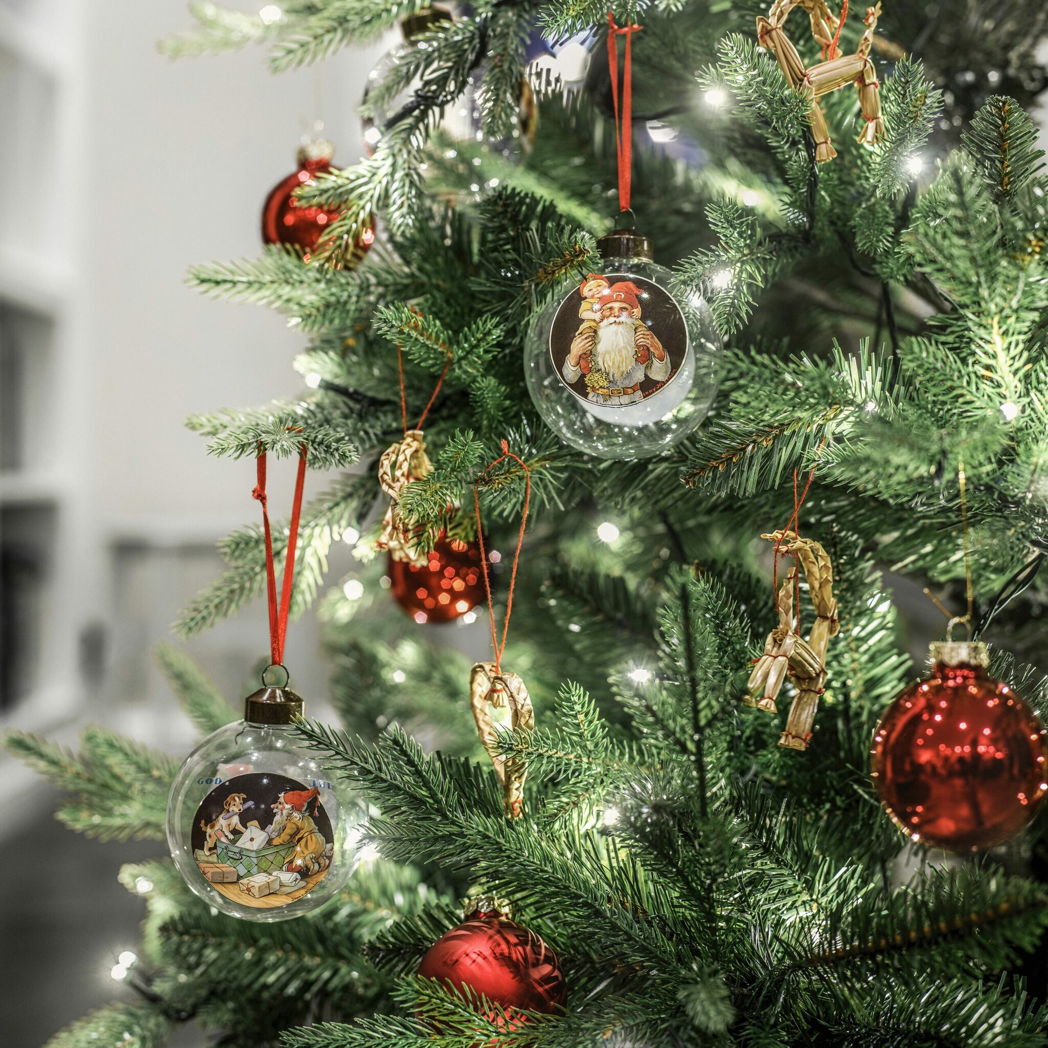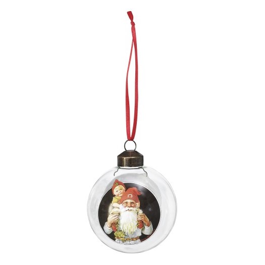 Nostalgin blir total med den här glaskulan att hänga i granen! Med motiv av Jenny Nyström.
