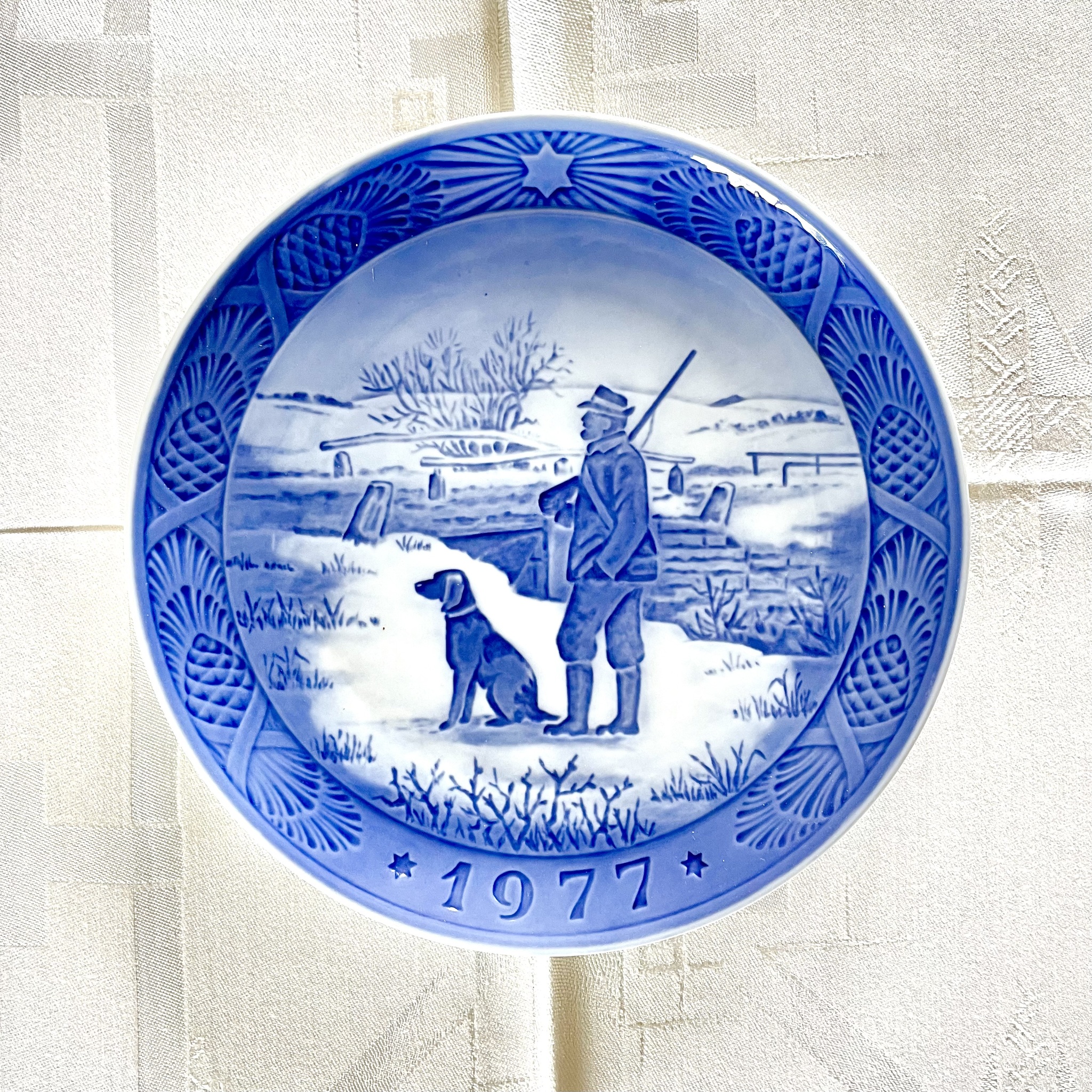 Jultallrik 1977 från Royal Copenhagen med motivet ?Immervad bro/Immervad bridge?. Häng upp på väggen eller använd som assiett. Diameter 18 cm. Obetydligt bruksslitage