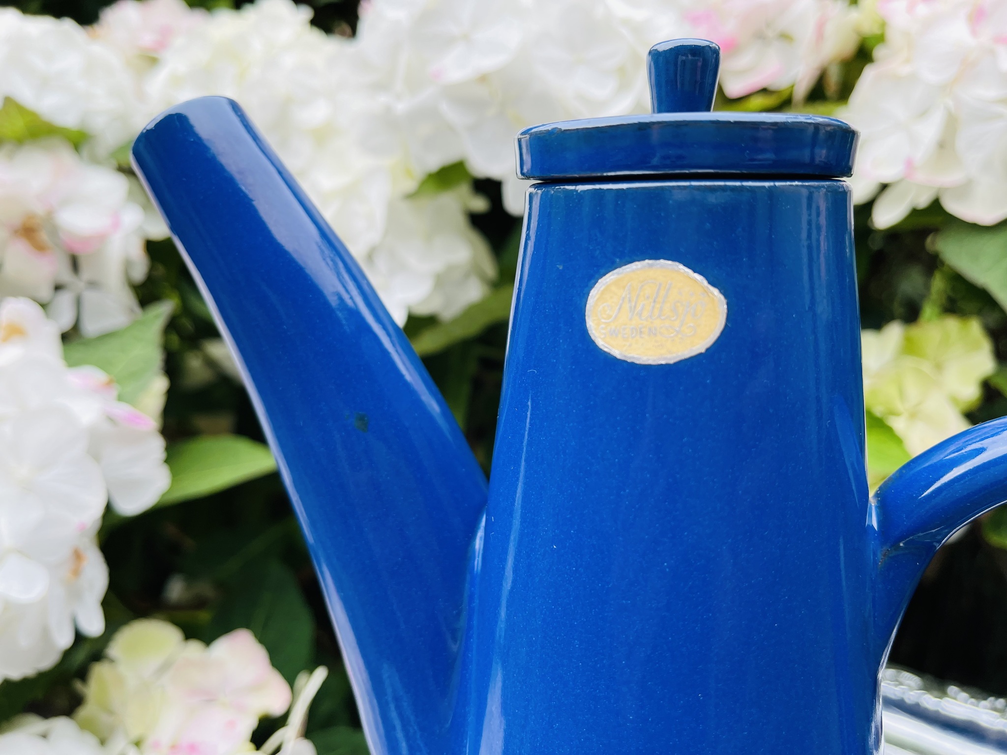 Ett blått blickfång fullt av charm och lekfullhet! 23 cm hög. Bruksslitage.