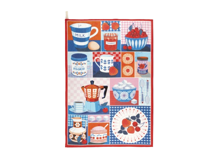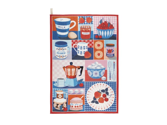 Kökshandduk i underbara färger och retrostil från Printer Johnson. Upphängnings krok. 100% bomull. 40 grader maskintvätt. Tillverkad i Storbritannien. Mått 75 x 60 cm.