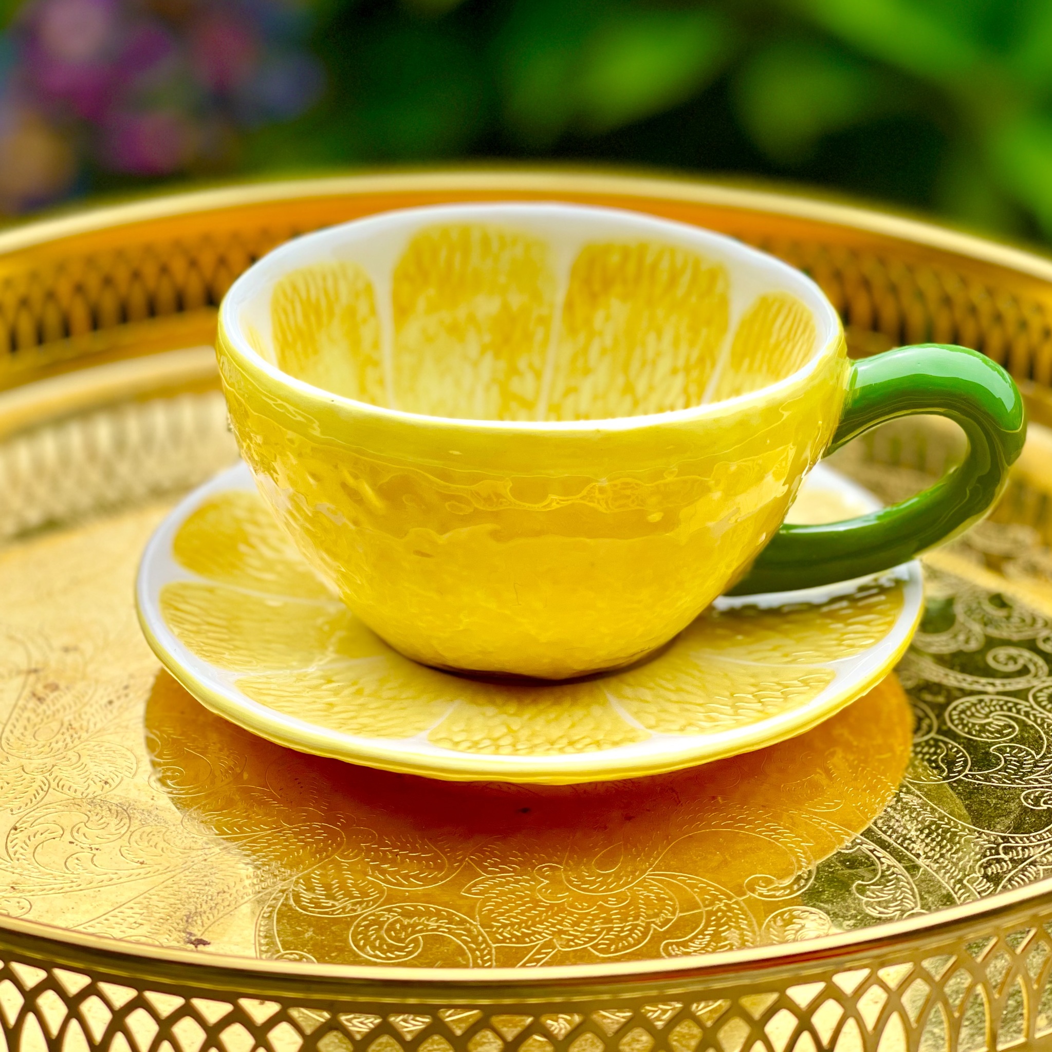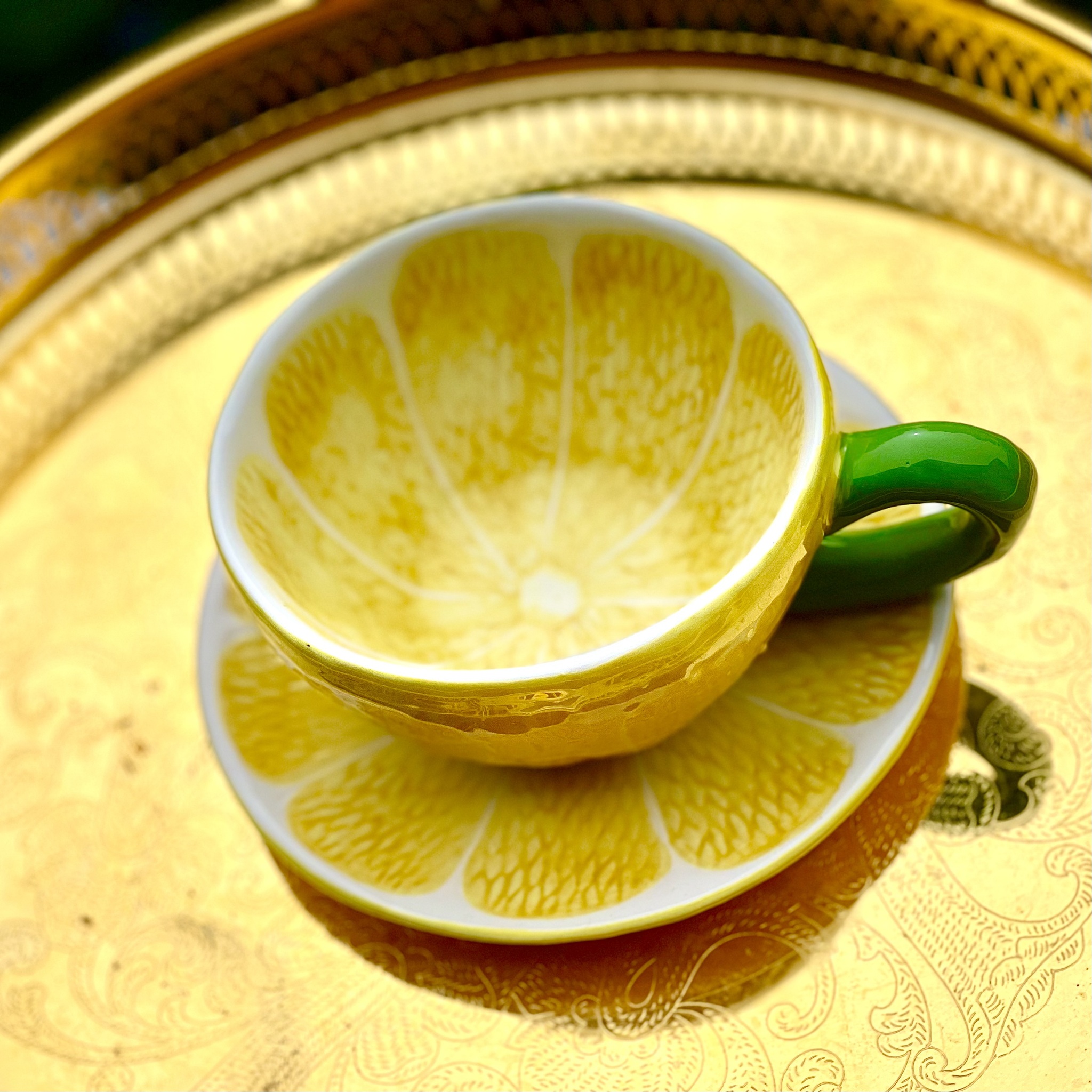 Handgjord, syrlig kopp i form av en citron! En garanterad humörhöjare på diskbänken. Tål maskindisk. Höjd 6,5 cm. Nyskick.