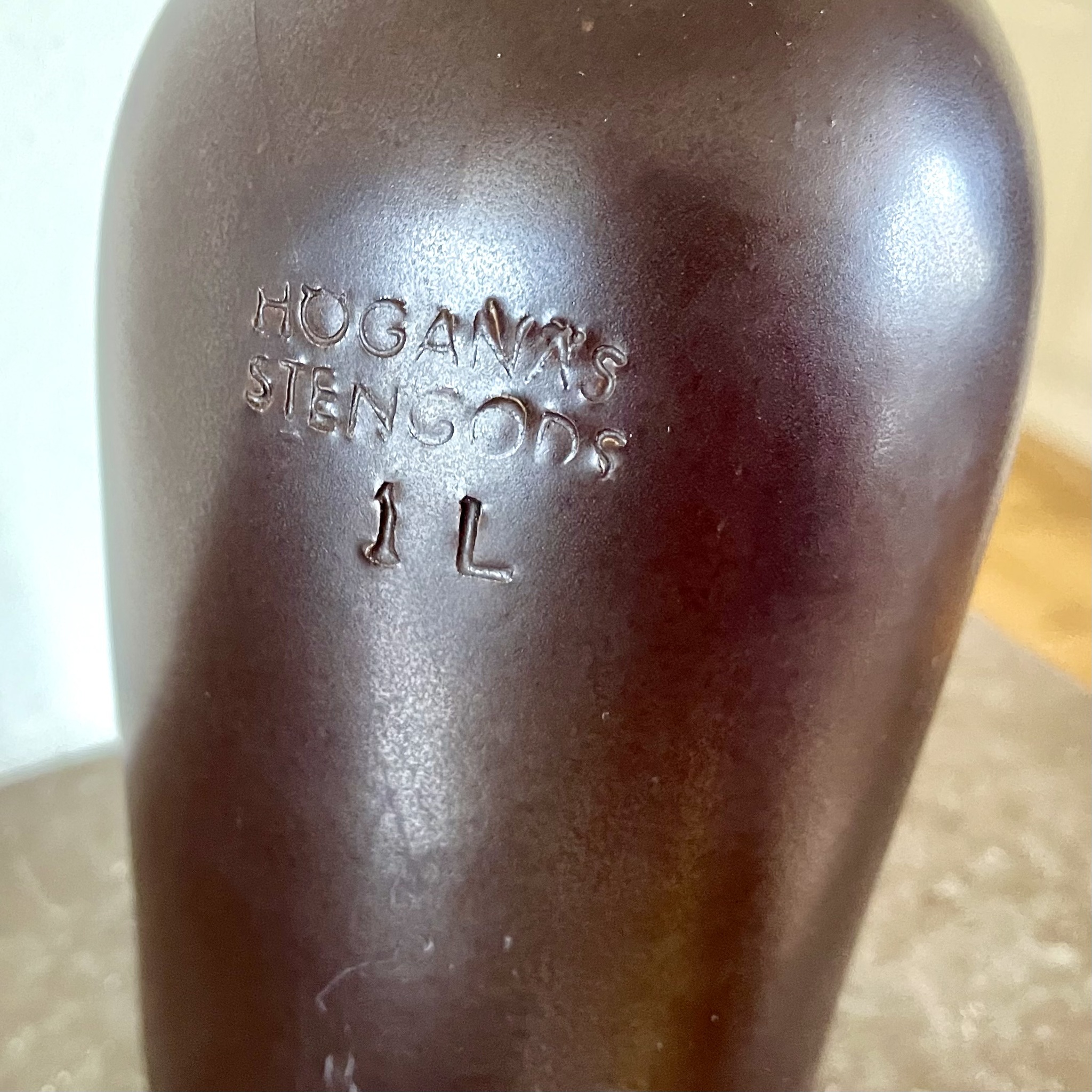 Finns något vackrare än vårens första modiga grenar i ett rustikt Höganäskrus? Flaskmodell som rymmer 1 liter. Bruksslitage. Höjd 20 cm, diameter 9,5 cm.