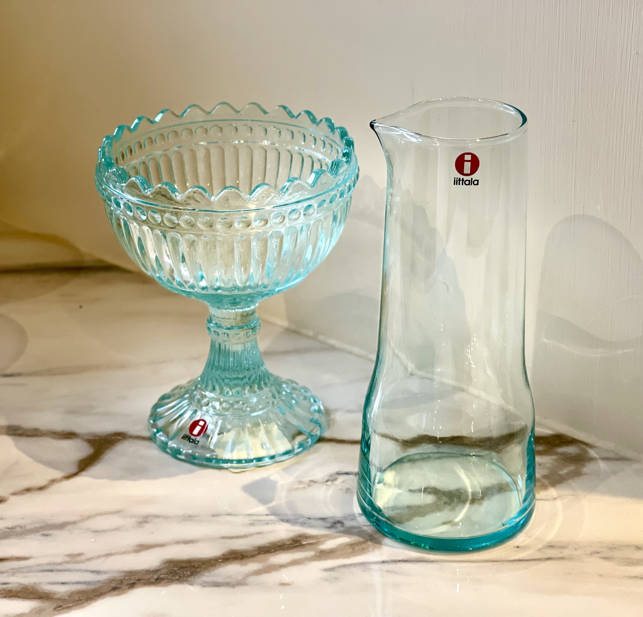 Liten kanna av glas från Iittalas serie ?Essence?, design av Alfredo Häberli i den ovanliga och läckra färgen ?water green?. Oanvänd. Höjd 15 cm, 28 cl.