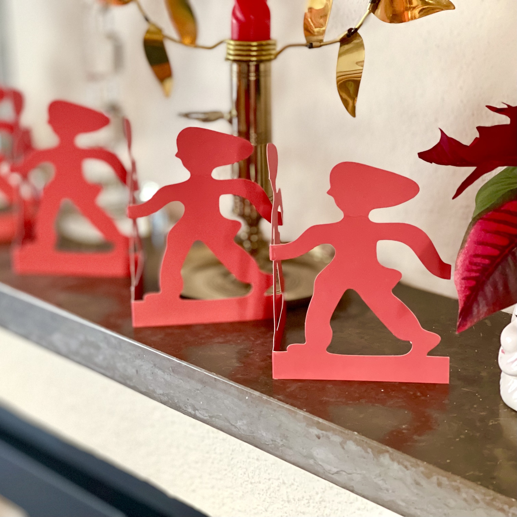 Gammaldags pappersrad med tomtar som blir pricken över i på julbordet. Höjd 11 cm, längd 59 cm.