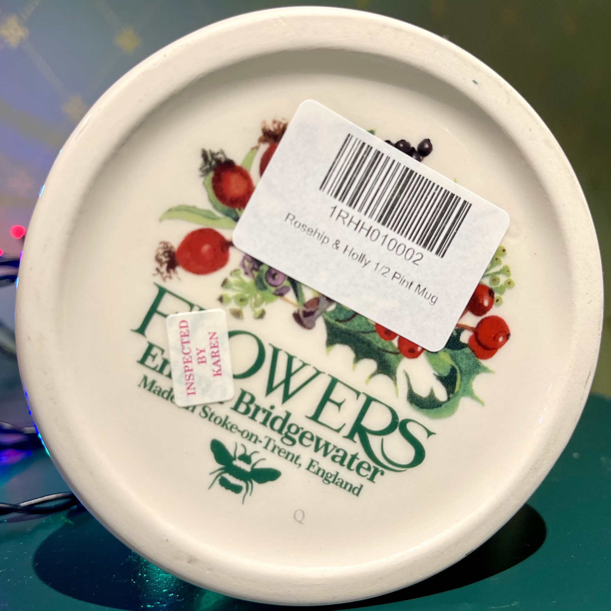 En alldeles underbar porslinsmugg av absolut högsta kvalitet i design av Emma Bridgewater. Mönster ?Rosehip & Holly?. NOS (New Old Stock) innebär att koppen är ny och oanvänd men tillhör en kollektion