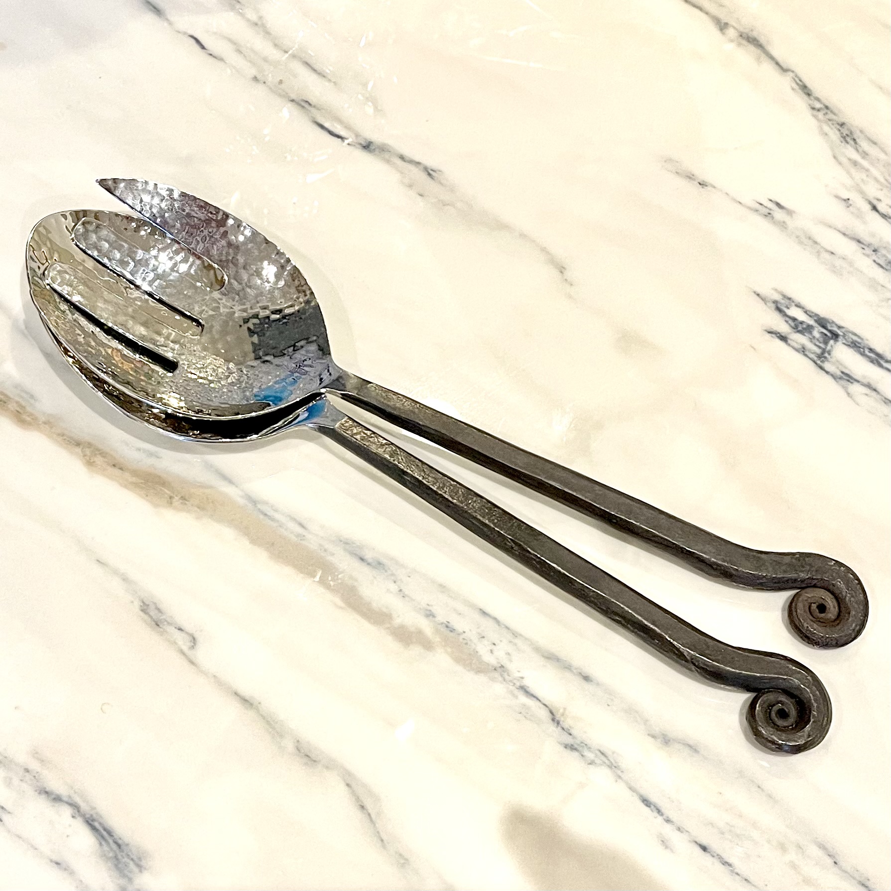 Oanvända salladsbestick med härlig tyngd och med elegant design. Längd 25,5 cm.