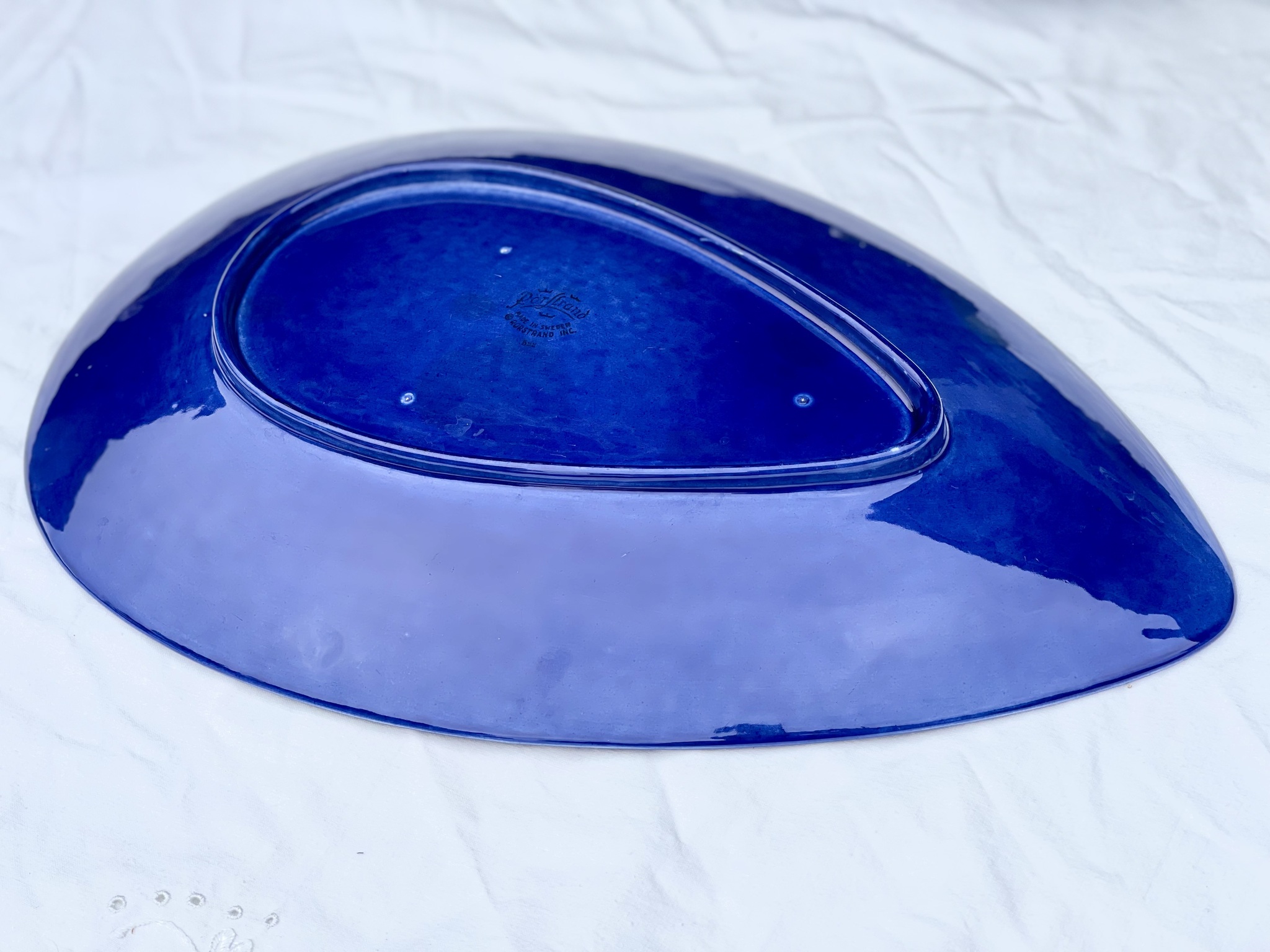 Klassisk design när den är som bäst! Serveringsfat “Blå eld” från Rörstrand i design av Hertha Bengtsson.  Bruksslitage. 34,5 cm långt, 23,5 cm brett, 3,5 cm högt.