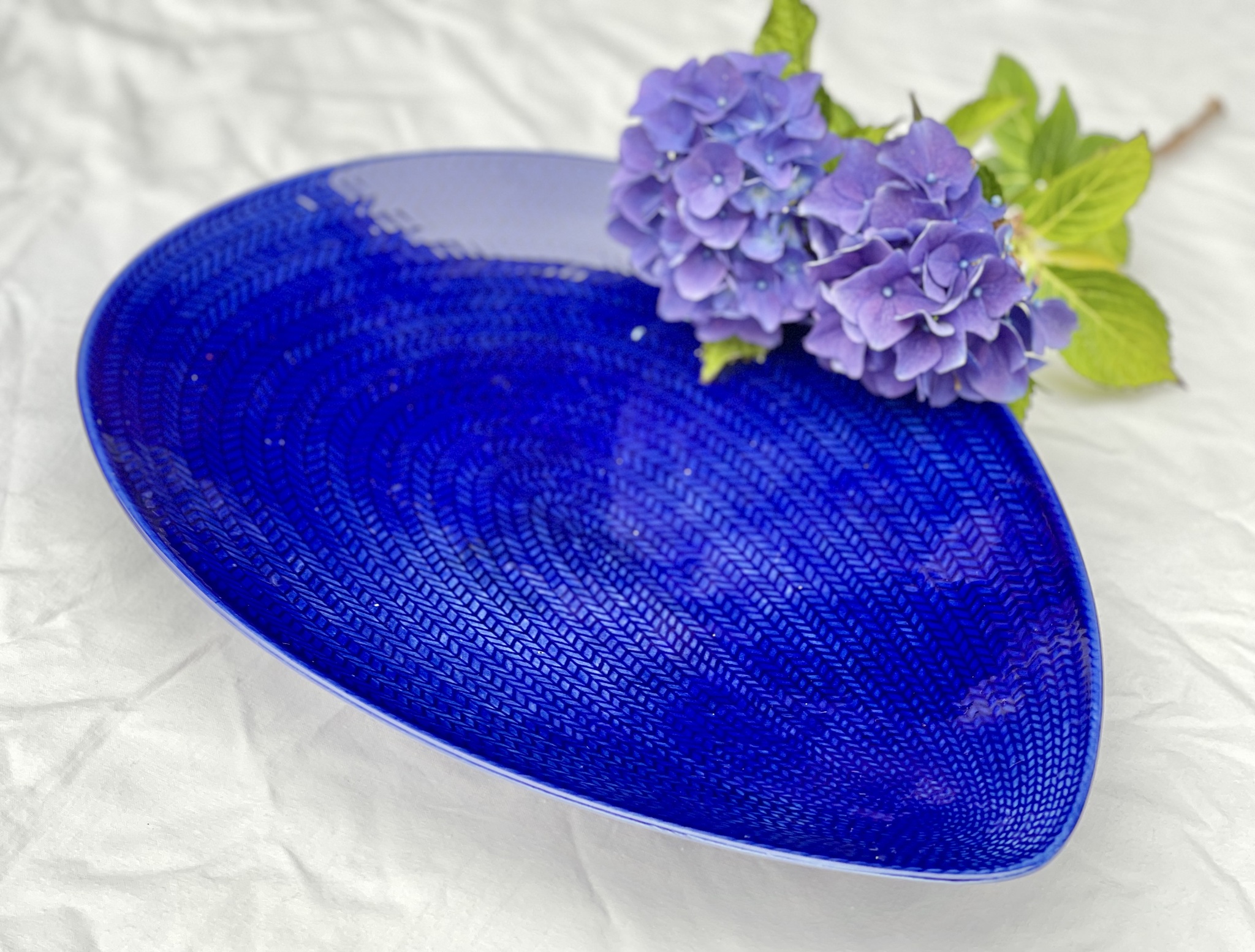 Klassisk design när den är som bäst! Serveringsfat “Blå eld” från Rörstrand i design av Hertha Bengtsson. Bruksslitage. 34,5 cm långt, 23,5 cm brett, 3,5 cm högt.
