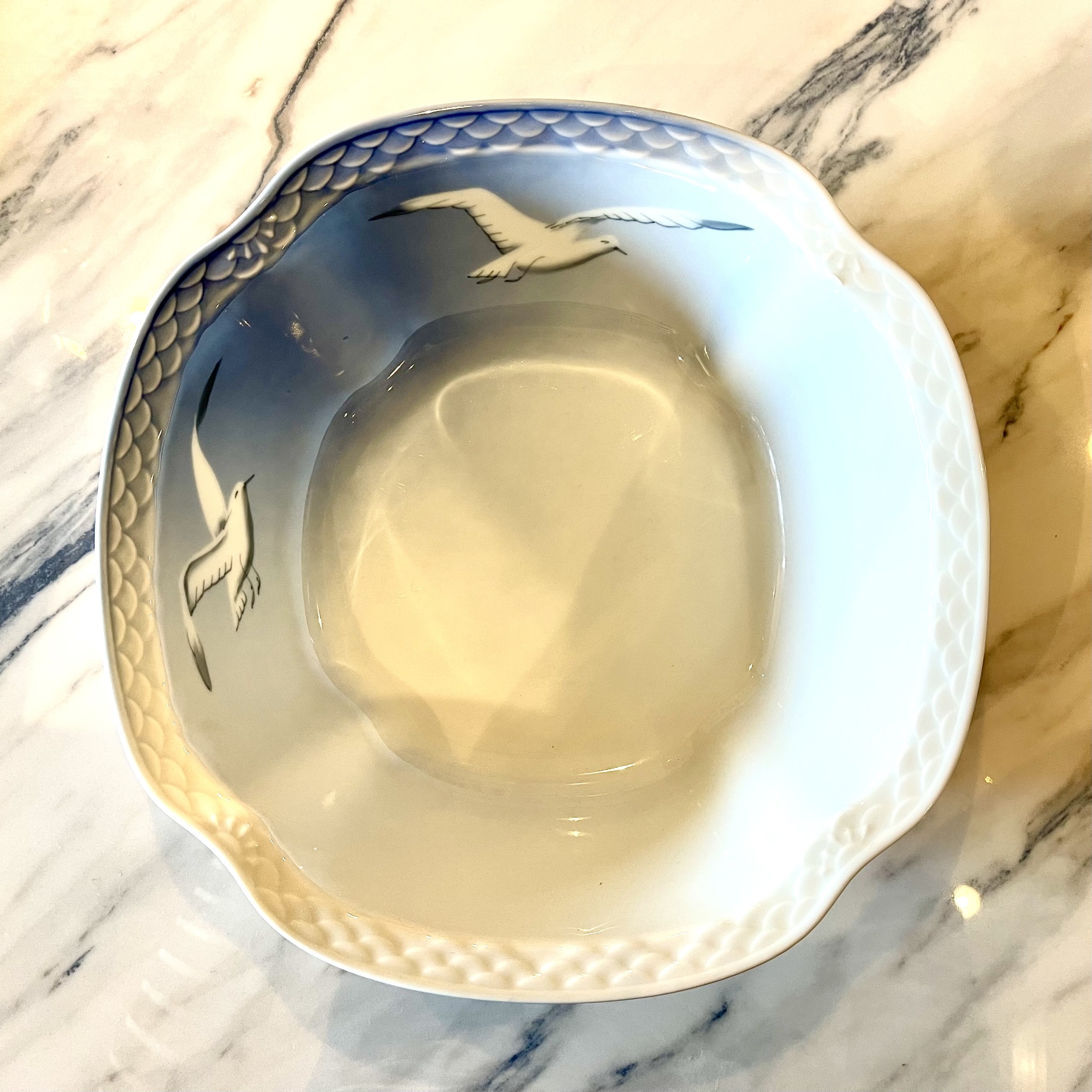Underbar serveringsskål ur Bing & Gröndahls klassiska servis ?Blå måsen?. Bruksslitage. Bredd 24,5 cm, djup 7 cm.