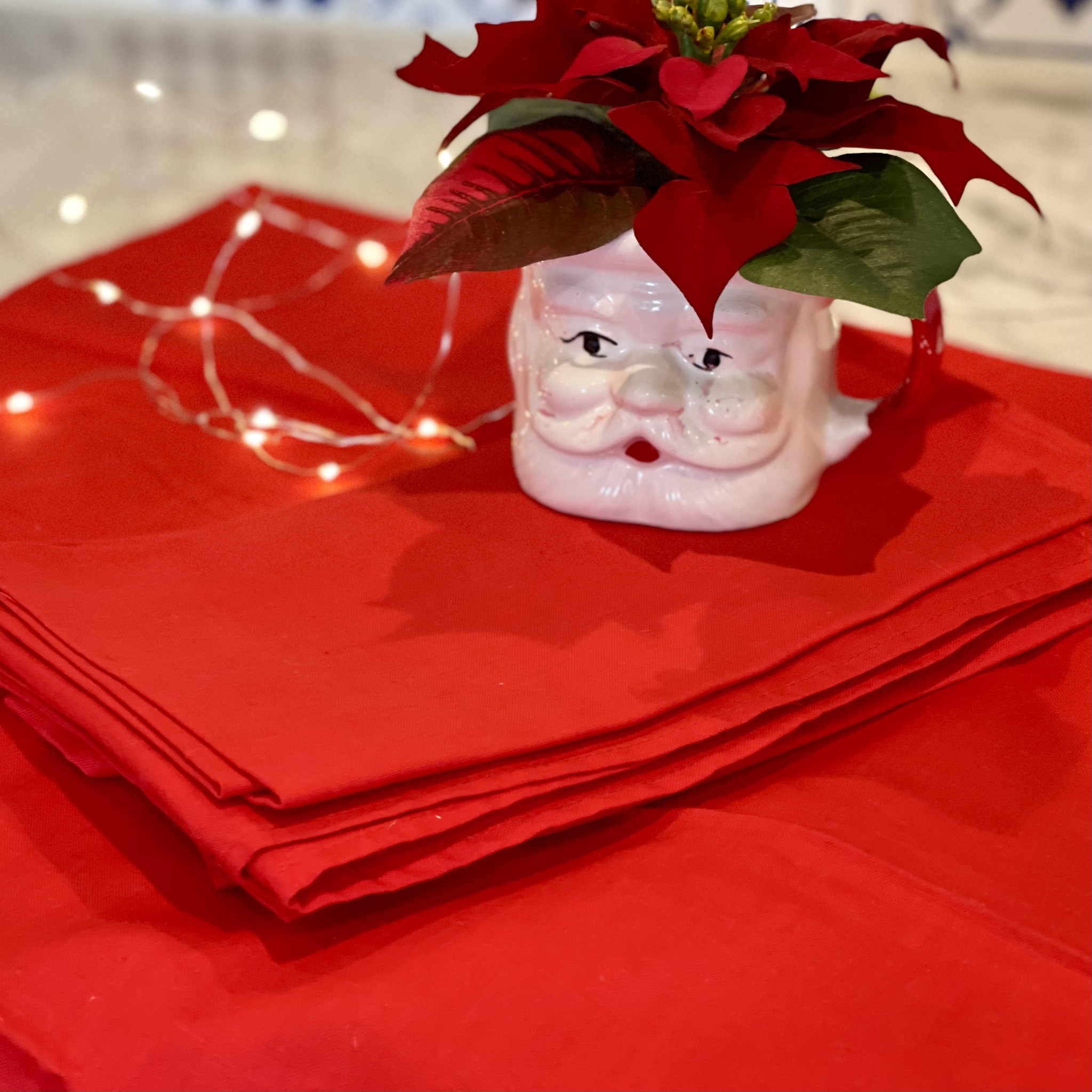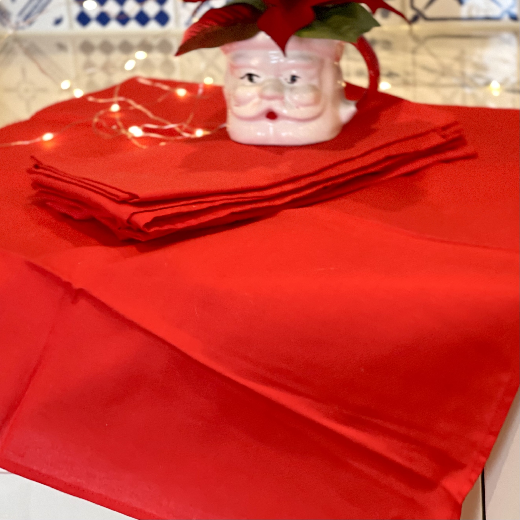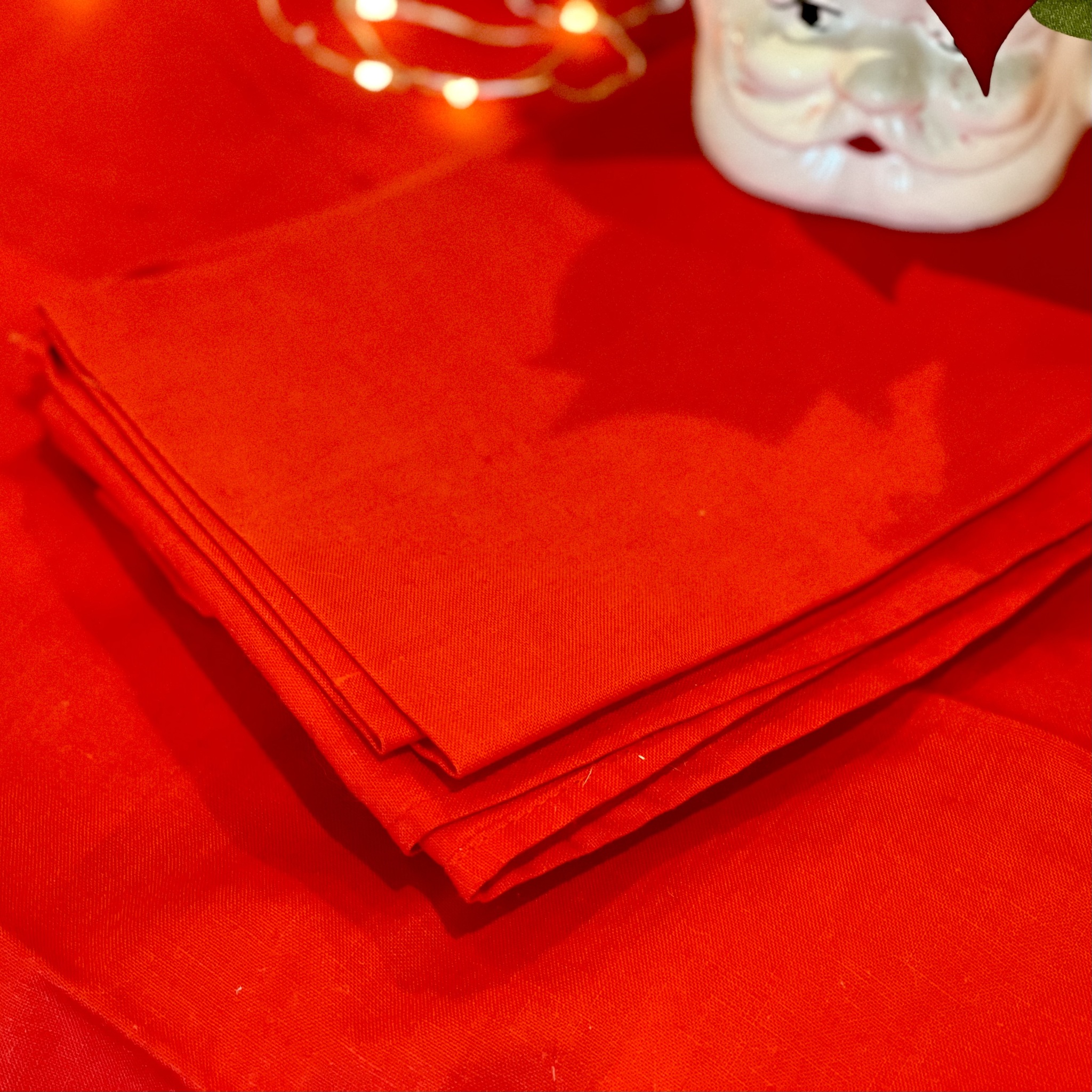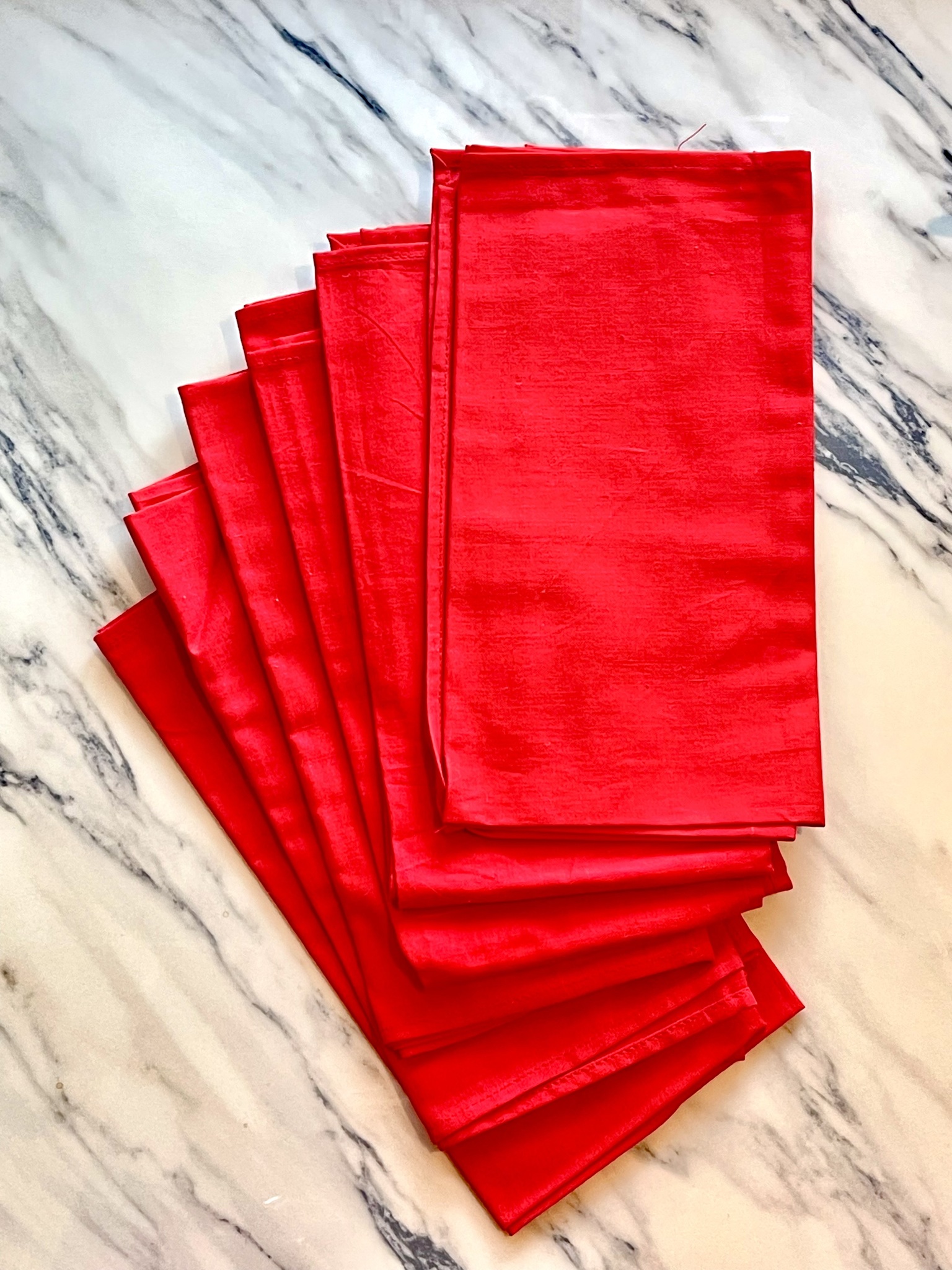 Sex stycken röda tygservetter av bomull, säljs som ett set. 48 x 48 cm.