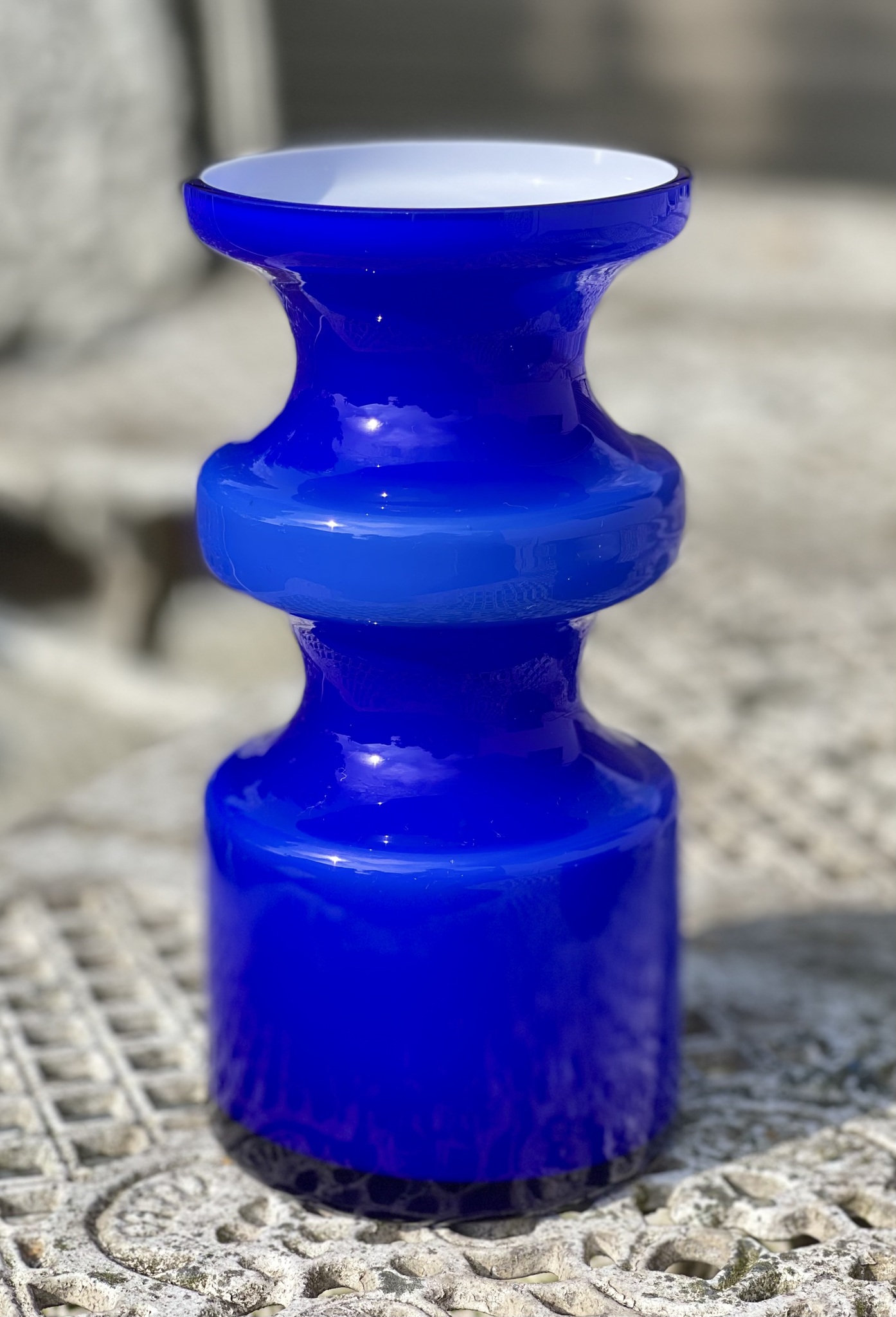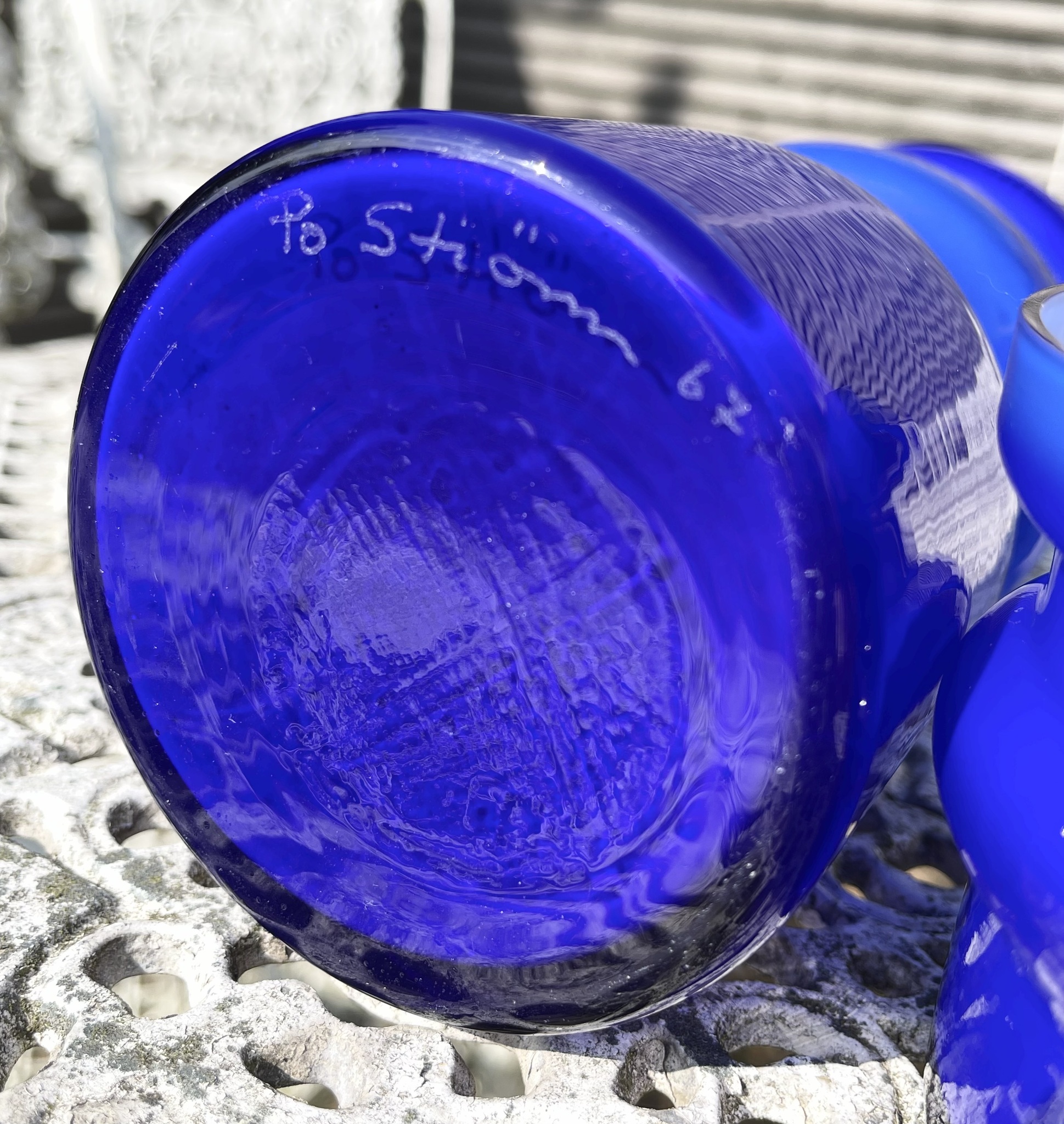Popglas på svenska! Per Olof Ströms ikoniska design i kornblått. Signerad ?P O Ström 67?. Obetydligt bruksslitage, mycket gott skick. 19 cm hög.
